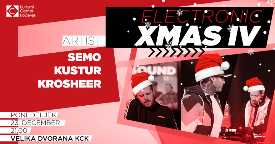 Četrti klubski večer XMAS bo v ponedeljek, 23. decembra od 21.00 ure dalje v dvorani KCK. Za dobro vzdušje in praznično doživetje bodo poskrbeli domači DJ-ji, Kustur, Semo in Krosheer.